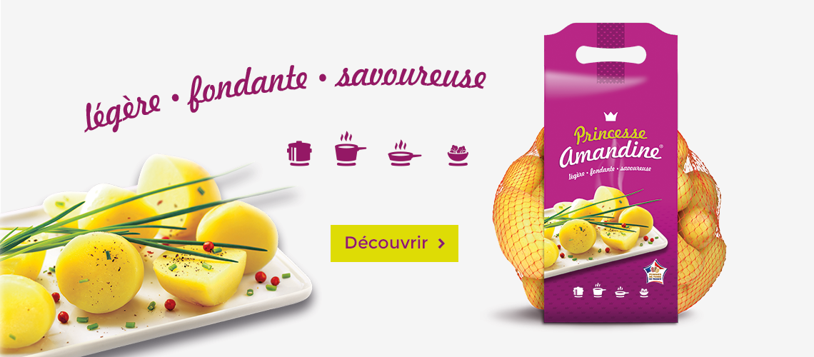 Si tous les grands chefs raffolent de la pomme de terre Princesse Amandine®, c’est parce que ses qualités royales la rendent inimitable ! À la fois fondante, légère et savoureuse, elle se révèle excellente en cuisine et permet toutes les recettes : rissolée, sautée, en gratin, à la vapeur, au four et en salade. Présente toute l’année sur les étals, Princesse Amandine® se conserve particulièrement bien. En plus, la pomme de terre Princesse Amandine® est une production 100% française !
