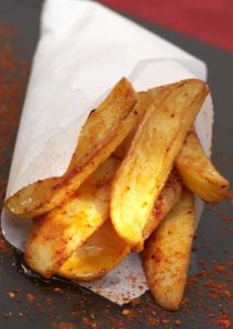Egoutter sur papier absorbant, saler et servir aussitôt dans un cornet de papier sulfurisé avec la sauce pimentée à part.