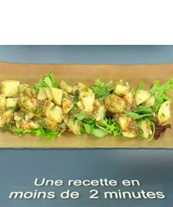 Sur un plat, disposer les feuilles de salade puis la salade de pommes de terre.